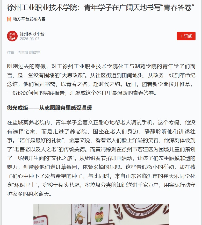 【学习强国】徐州工业职业技术学院 青年学子在广阔天地书写“青...