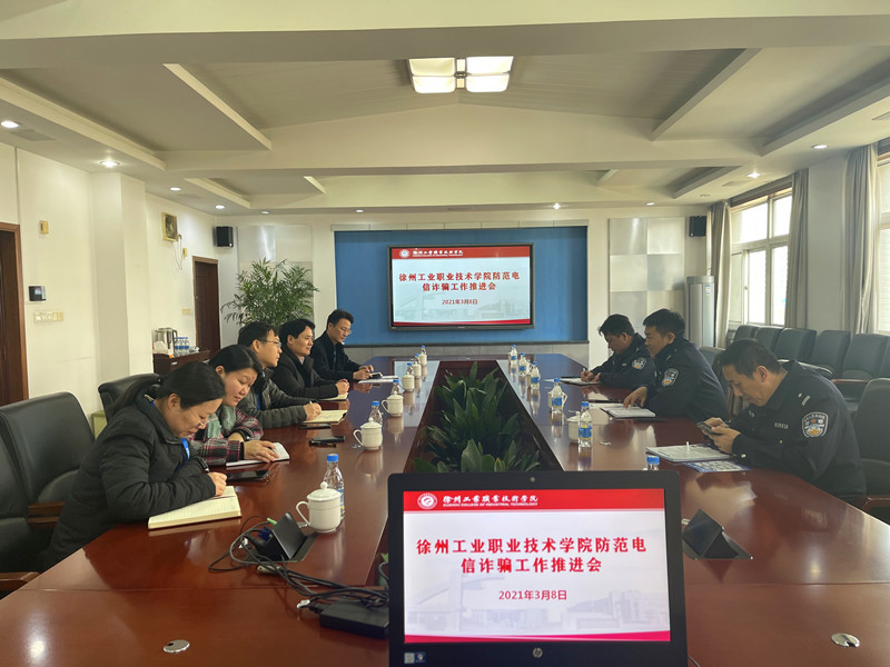 为进一步做好防范电信诈骗工作,确保师生财产安全,营造良好校园安全氛围,2021年3月8日下午,保卫处联合九里派出所、学工处召开防范电信诈骗工作推进会。朱作付副院长、九里派出所所长宋庆辉、副所长梁昊,保卫处学工处相关人员出席会议。