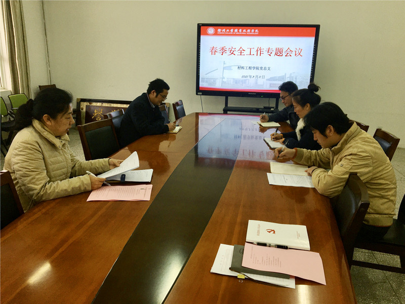为进一步强化安全保障教科研工作,3月11日上午,材料工程学院在B05-306会议室召开2021春季安全工作会议。材料工程学院班子成员、实训中心主任、安全员参加会议,会议由材料学院总支书记李素婷主持。