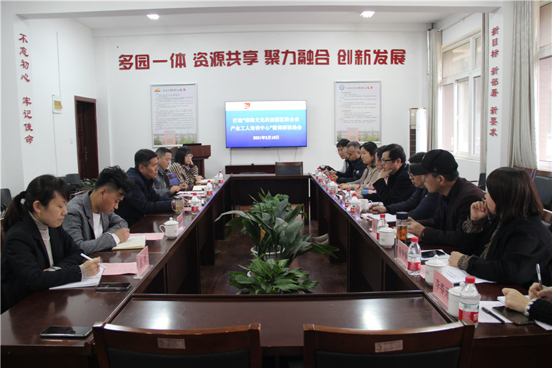 张恒中总经理对褚波主任一行的到来表示热烈欢迎,对科技园的企业现状、党工建设情况、职工结构、产业结构、工会分布和未来园区发展规划等经营管理状况做简要介绍;并表示打造“淮海文化科技园区跨企业产业工人培训中心”非常契合园区发展规划,一定给予大力支持,并对培训中心的建设提出初步方案。