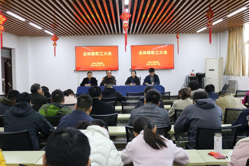 3月17日下午,机电工程学院在B16-302召开了新学期全体教职工会议。机电工程学院全体教职工参加会议。