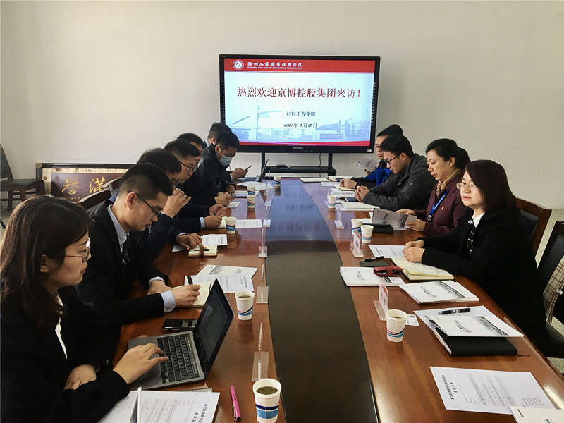 山东京博控股集团是亚洲品牌500强和中国500强企业,年产值800余亿。京博石化产业涉及高效能燃料、高端化工品、高性能材料三大板块,其中自主研发的聚正牌反式丁戊橡胶为国际首创,被国家发改委列入战略新兴产业目录;京博聚牌(溴化)丁基橡胶、聚丁烯合金等高性能新材料分别达到国际国内先进水平。此次公司在行业内慕名到材料工程学院寻求合作。