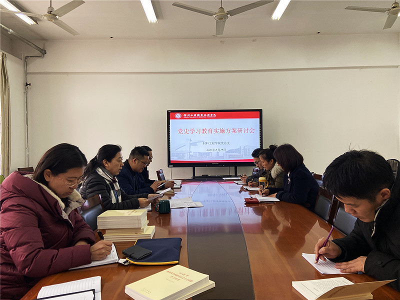 会上,李素婷书记带着大家学习了我校党委关于在全校开展党史学习教育的实施方案(2021[24]号),同时传达了祝书记在动员会上的讲话和要求。然后李书记解读了材料学院党总支开展党史学习教育实施方案,与会人员集体讨论了材料学院的实施方案,一致通过了实施方案。最后李书记对各党支部的学习教育计划提出要结合专业发展和支部特色,开展形式多样的活动,提高学习效果等具体要求。