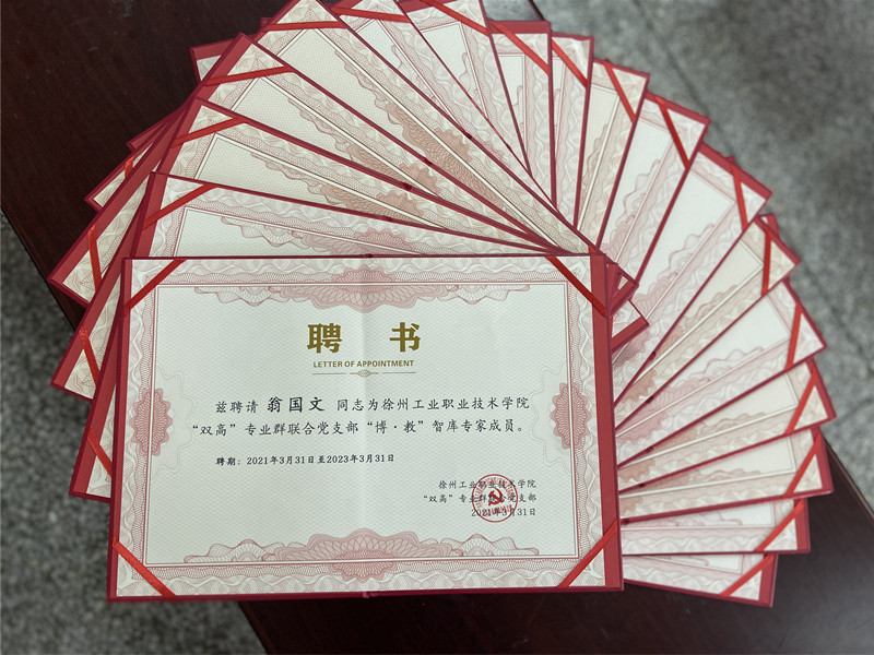 3月31日,“双高”专业群联合党支部在行政楼三楼会议室举行党支部“博·教”智库成立暨智库专家聘任仪式。材料工程学院党总支书记李素婷出席会议并为翁国文、王艳秋、吴红、孙金海等校内15位专家及产业教授韦帮风、孟维、武辛军3位专家颁发聘书。党支部书记柳峰同志主持会议。