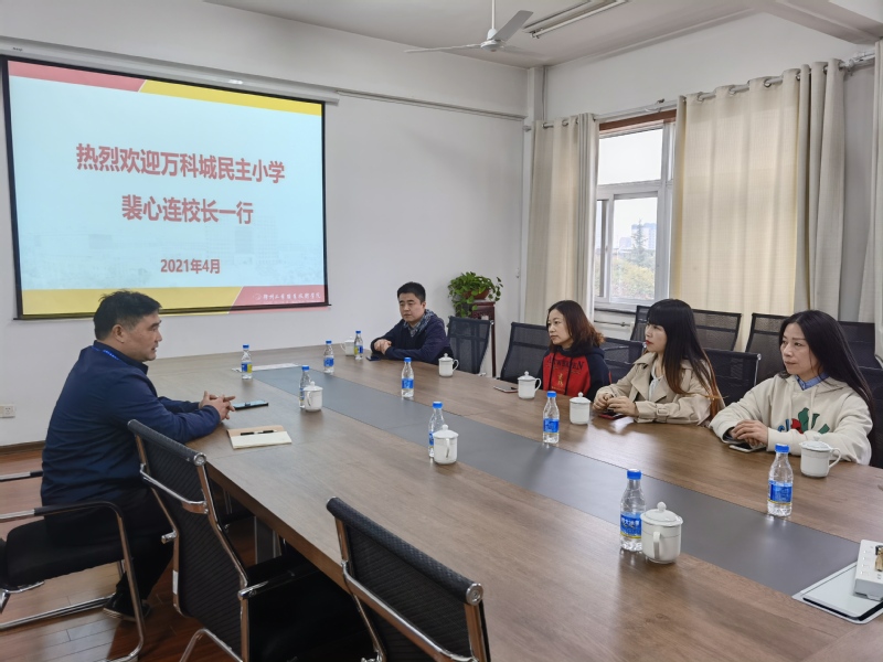 4月1日下午,万科城民主小学校长裴心连带领班子成员莅临我校开展联谊,校工会、妇联及二级学院等相关人员参与活动。
