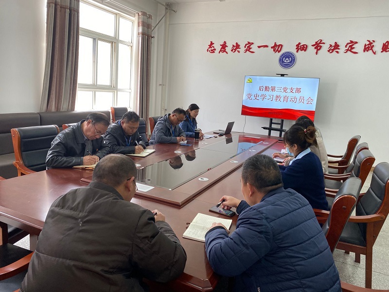 后勤第三党支部召开了党史学习教育动员会,围绕深入学习贯彻习近平总书记在党史学习教育动员大会上的重要讲话精神,以及学校学习教育动员会上党委书记祝木伟讲话要求,高质量高标准完成党史学习教育“六专题一实践”重点工作任务进行动员部署。