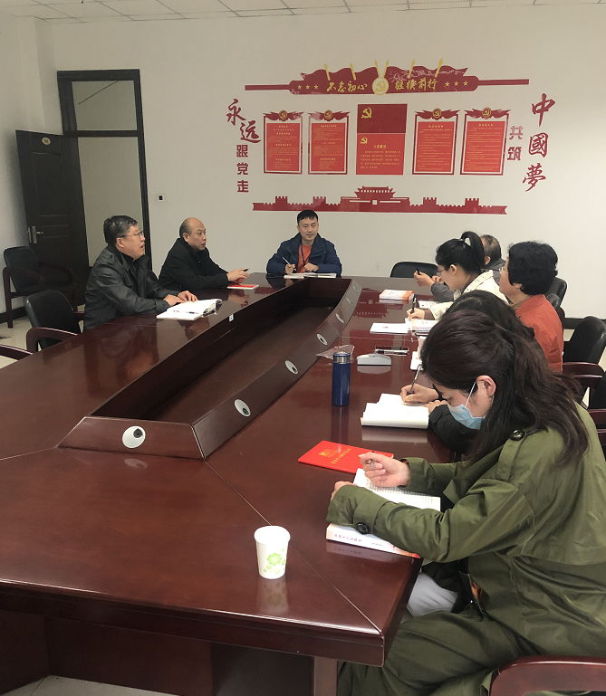4月15日,后勤党总支在B02-310会议室召开党史学习教育专题会,会议由党总支书记杜庆深主持,总支委员、各党支部书记参会。