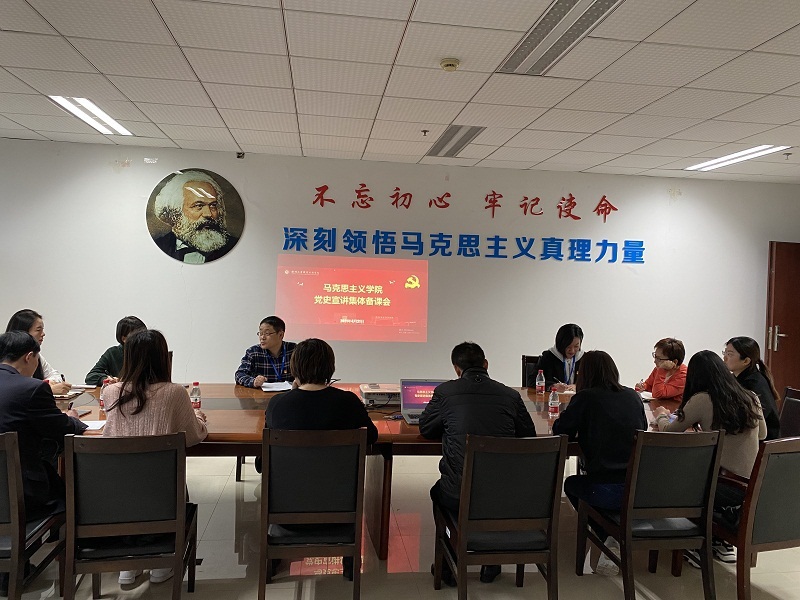 为贯彻落实学校党委关于党史学习教育的部署,开展好思政教师党史宣讲活动,4月21日下午,马克思主义学院召开党史宣讲集体备课会,会议由马克思主义学院党总支书记王博主持,全体思政课教师参会。