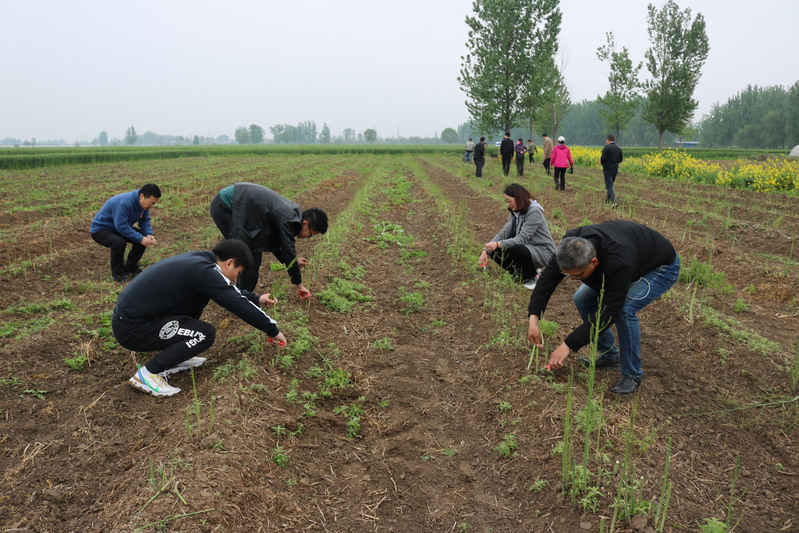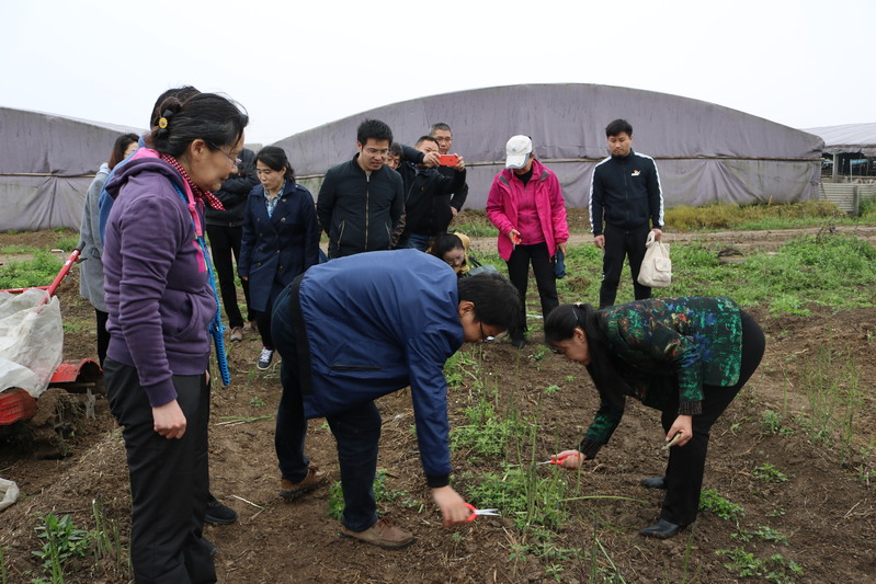 接着,教师们来到田地里,在合作社工作人员的指导下,分别体验了芦笋的人工采收与新型芦笋采收机的现场示范采收。当天虽然下着小雨,教师们仍然热情高涨,俯下身来与当地合作社工作人员一起相互配合、互相帮助、共同劳作,在实际采收中体会劳动的快乐与光荣,也体悟到机器采收需要进一步改进的方向。整个活动历时近三个小时,教师们边看边听边体验,感受到了社会主义新农村和农业现代化建设成果,增强了技术服务的职业责任感和使命感。
