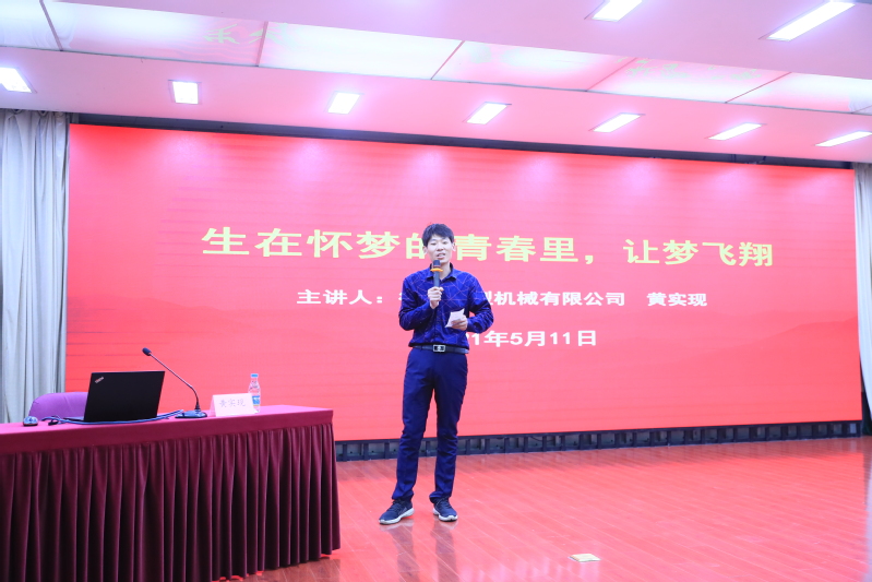 为深入学习贯彻习近平总书记在党史学习教育动员大会上的重要讲话精神,扎实推进学校党史学习教育深入开展,在全校上下广泛营造“学党史、悟思想、办实事、开新局”的浓厚氛围,教育引导广大师生筑牢信仰之基、补足精神之钙、传承劳模精神,根据学校党委党史学习教育工作部署,为发挥新时代先进人物的榜样示范作用,5月11日下午,机电工程学院党总支邀请徐工集团徐州重型机械有限公司的全国劳动模范、江苏省优秀共产党员张怀红和江苏省五一劳动奖章获得者黄实现,在图书馆报告厅为师生们带来别开生面的宣讲报告。宣讲主题为“学党史筑牢理想信念,强技能学习时代楷模”,宣讲活动由机电工程学院党总支副书记王贵锋主持。