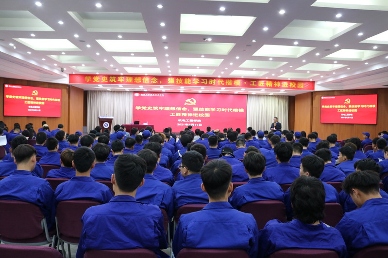 两位大国工匠分别以“弧光折射梦想舞台,焊花点亮精彩人生”、“生在怀梦的青春里,让梦飞翔”为主题为师生们作了精彩的报告。在报告中,张怀红同志结合自身经历从“匠人初心”、“匠人坚守”、“匠人传承”三个方面生动诠释了脚踏实地、精益求精的工匠精神,也诠释了一位优秀共产党员的理想信念和初心使命。他提到“在21年的一线岗位工作中,我之所以能从一名普通的工人成长为全国劳动模范,从一名普通党员成长为江苏省优秀共产党员,离不开党的培养,是党为我提供了那么好的发展平台,党徽就像一双眼睛时刻监督着我,提醒着我,不忘初心、牢记使命,砥砺前行”。接着,他希望同学们能够以党史学习教育为契机,始终牢记党对青年学生的殷殷嘱托,强本领,固基础,为党和国家的事业贡献自己的青春力量。