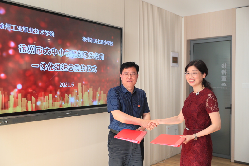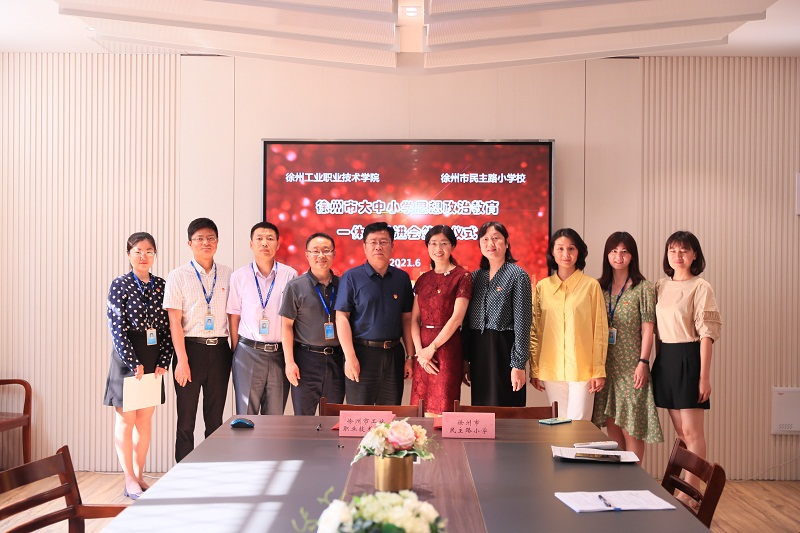 为深入贯彻习近平总书记在学校思想政治理论课教师座谈会上的重要讲话精神,认真落实《关于深化新时代学校思想政治理论课改革创新的若干意见》《教育部“十四五时期加速推进大中小学思政课一体化建设”》部署,6月2日下午,马克思主义学院与徐州市民主路小学举行“徐州市大中小学思想政治教育一体化”签约仪式,马克思主义学院院长乔向东、总支书记王博、各教研室主任及鼓楼区教育局党委委员、民主路小学校长周娅、党支部书记刘红艳、业务校长姚蕊、办公室主任张彤参加了此次活动。