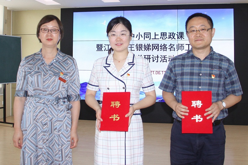 最后,徐州市大马路小学特别聘请王博、曾晓为学校思政学科校外辅导员,大马路小学任焱校长为两位老师颁发了聘书。