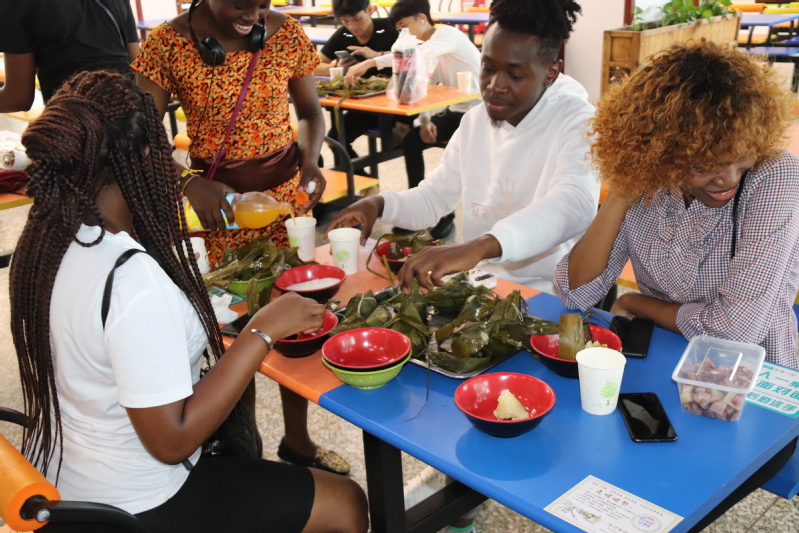 餐厅中,一口大锅早已支好,沸水中粽子上下翻腾,出锅的一刹那,香气四溢,沁人心脾。同学们围拢开来,就着砂糖,大快朵颐起这美味的端午美食。我校留学生们在微雨清风、粽香四溢中度过美好的端午节。