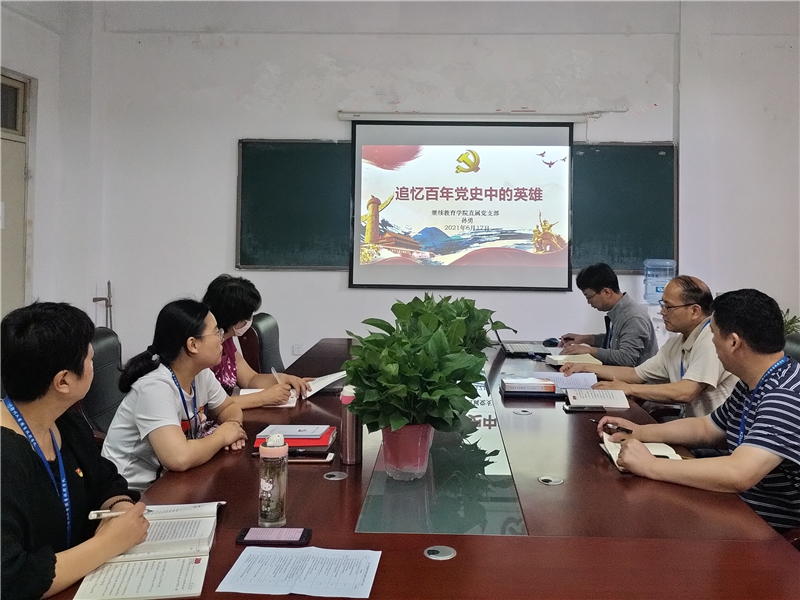 为贯彻落实中央、省委、学校关于党史学习教育的重要精神,进一步推进党史学习教育深入开展,增强党员使命感和责任感,6月17日上午,在B02-205会议室,继续教育学院直属支部书记孙勇为全体党员上了主题为《追忆百年党史中的英雄》的党课。