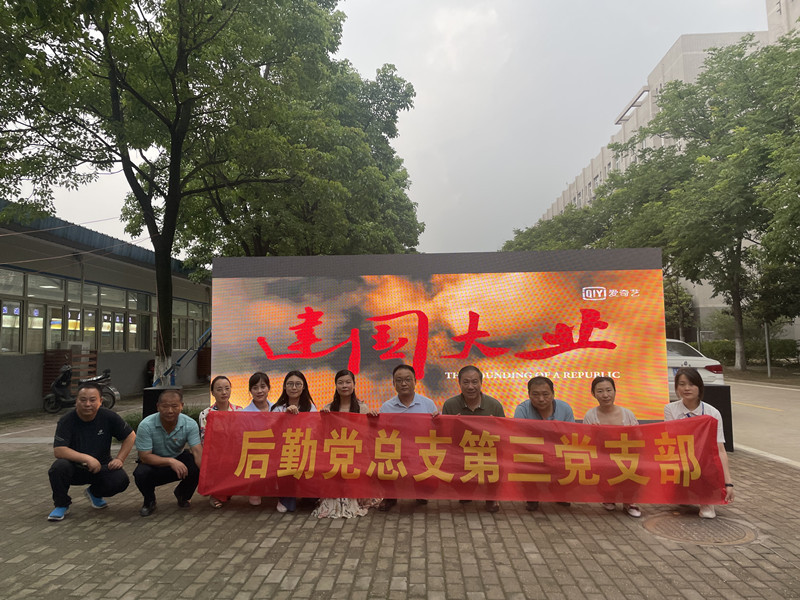 晚上6时,后勤第三党支部组织全体党员、后勤服务中心职工在第三食堂门口观看革命历史电影《建国大业》,该电影讲述了抗战胜利至新中国成立前发生的一系列重大历史事件,重庆谈判、双十协定、辽沈战役、淮海战役、渡江战役、定都北平、政治协商会议,中国共产党领导全国人民克服重重阻碍,建立中华人民共和国的艰难历程,最终带领中国人民迎来了新中国的解放。