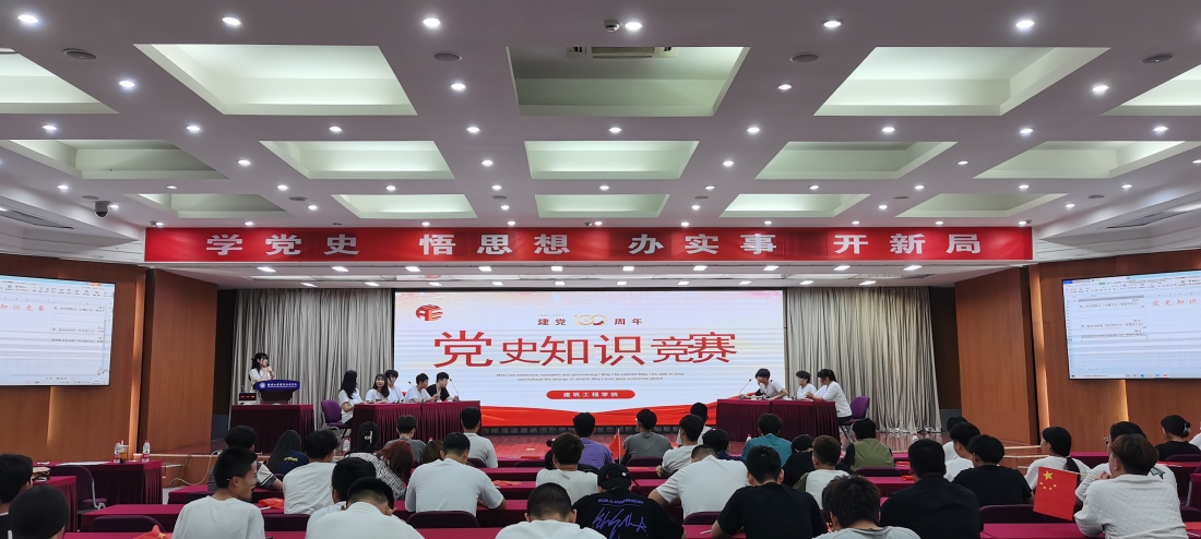 为推动党史学习教育深入开展,激励广大青年团员扎实学习党史知识,进一步提升学史明理、学史增信、学史崇德、学史力行成效,助力党史学习教育落实落地,7月2日,徐州工业职业技术学院建筑工程学院于图书馆报告厅举办了“七一”系列活动——党史学习教育知识竞赛决赛。