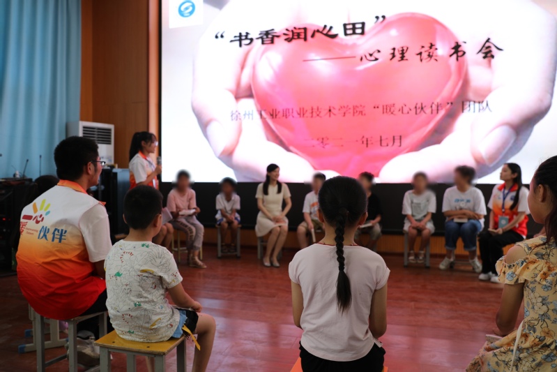 开班仪式上,丰县团县委书记刘宇雨、丰县首羡镇副书记靳昭分别致辞,我校“暖心伙伴”团队指导老师缪斯与丰县暑托班负责老师共同为“暖心驿站”共建基地揭牌,我校“暖心伙伴”学生代表张荣会做精彩发言。随后“暖心伙伴”心理帮扶团队带领首羡镇留守儿童与困境儿童开展“书香润心田”心理沙龙,宣传心理健康知识,开展心理育人活动。活动过程中,孩子们聆听着朋辈领读者从书中汲取的知识,思考着书友分享者带给自己的启发,探索内心感悟,获取“心”的启迪与收获。孩子们在“暖心伙伴”的带领下感受到阳光自我的力量,“暖心伙伴”成员也从孩子们的身上感受到童真与坚韧。