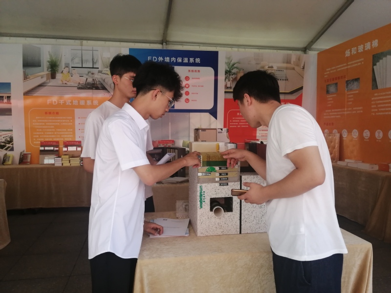 在我校实训中心,专业安装人员亲自为学生展示了保温板的安装工艺流程以及注意事项,同学们也纷纷进行了实际操作,培养了自身的动手能力和操作技能。尽管天气炎热,大家还一直活跃在建材展会现场,与布展人员进行深入的交流,详细了解了保温板的类型、特点、节能效果等;深刻认识到保温板在降低建筑能耗,减少二氧化碳排放,实现习近平总书记提出的碳减排、碳中和目标中的积极作用。大家纷纷表示,今后要更好的学习专业知识,合理规划自身的职业生涯,努力为实现建筑绿色低碳发展尽自己的一份力量。