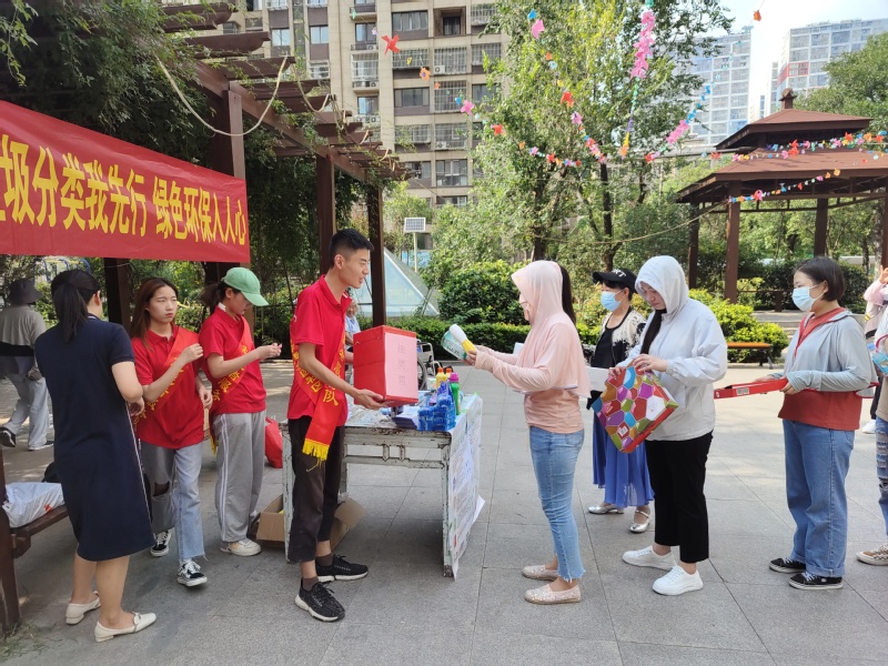 为进一步加强生态文明建设,大力推进生活垃圾分类工作,提高资源回收利用率,倡导“绿色社区低碳生活”的科学理念,提升居民垃圾分类意识,近期,我院暑期社会实践团来到鼓楼区泽慧嘉园社区,开展了“垃圾分类我先行”暑期社会实践活动。