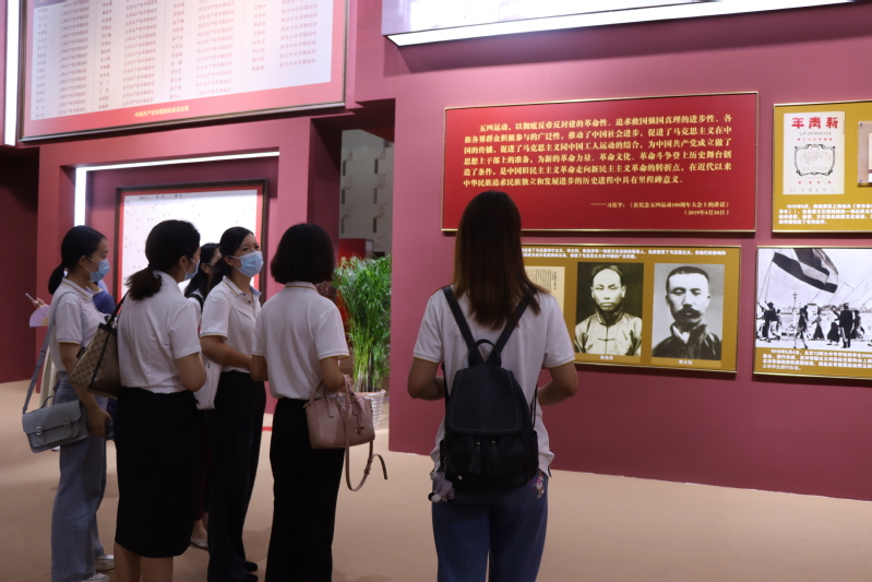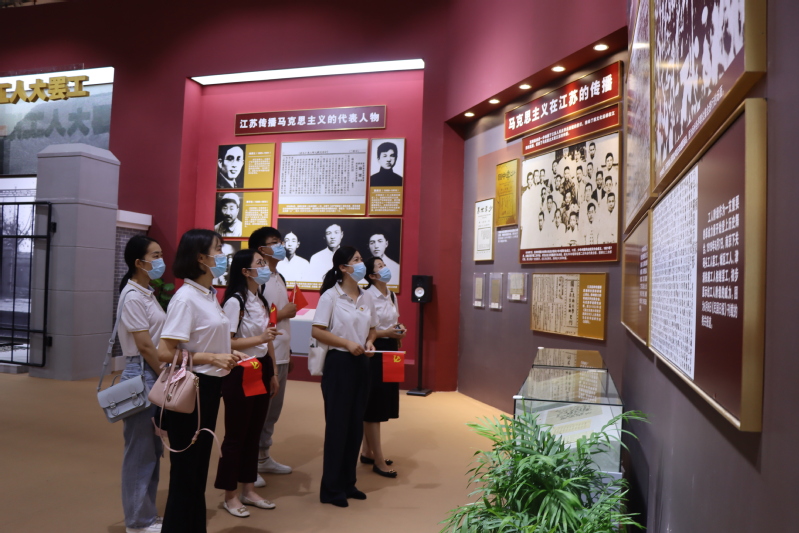 为深入学习贯彻习近平总书记在党史学习教育动员大会上的重要讲话精神,落实学校党史学习教育动员部署会议要求,结合团中央、团省委“学党史、强信念、跟党走”学习教育安排,7月18日,我校团学干部师生代表一行十人赴南京参观“百年征程 初心永恒——中国共产党在江苏”历史展,“沉浸式”学习百年党史,感悟如磐初心。