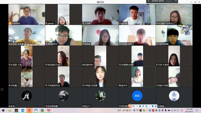 9月15日,我校新一届校学生会工作人员培训会通过腾讯会议“云端”举行。团委全体成员、新一届校学生会工作人员参加了培训。