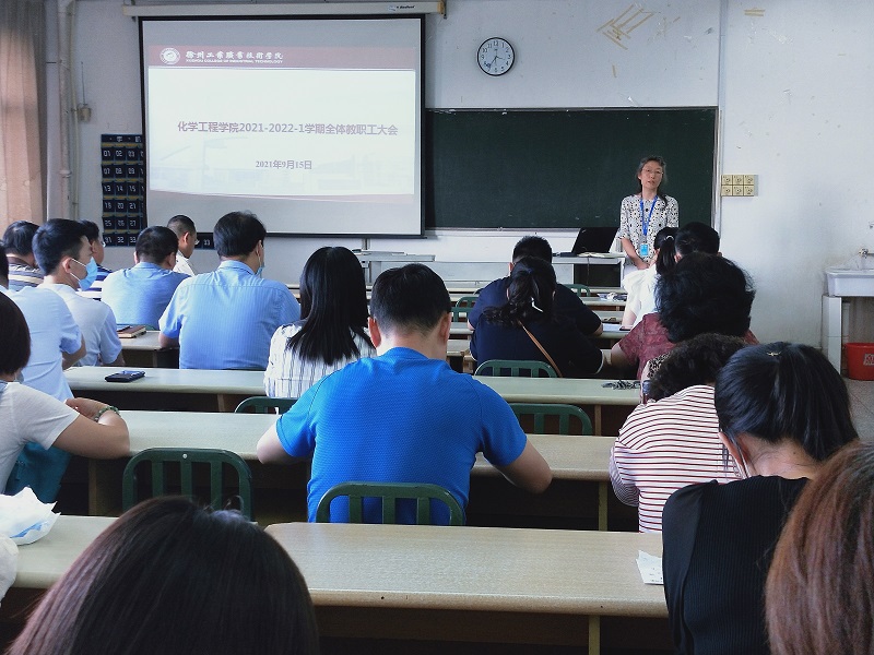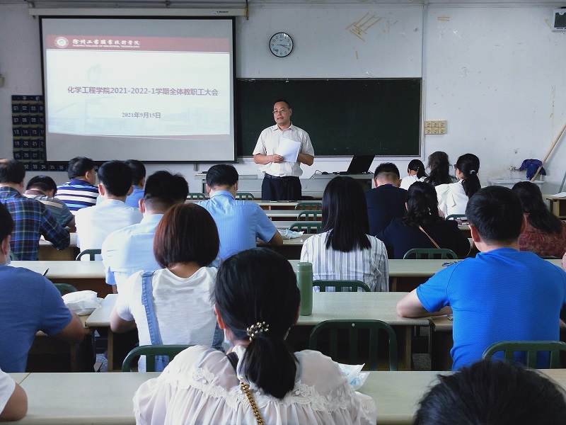 9月15日下午,化工学院分别在B08-219会议室和B08-309教室,通过线上、线下相结合的方式,召开全体教职工大会,传达学校会议精神,安排部署新学期各项工作,会议由化学工程学院院长张雷主持。