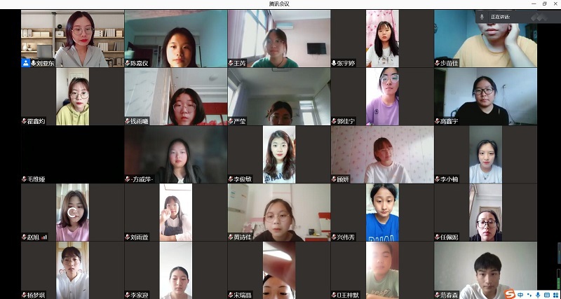 辅导员孟醒向同学们作了团学发展相关知识介绍,说明共青团是党的助手和后备军,要求同学们坚决响应党的号召,以泰山不让寸土、江海不捐细流的精神,做好身边的小事,系好人生的每一粒扣子。孟老师还结合具体案例,向新生进行了法制安全教育以及防诈骗知识的宣讲,以避免给个人和家庭带来财产损失。班主任刘亚东老师与同学相约云端,开展一场情感交流的破冰之旅,通过“我的家乡故事”、“在线游戏接龙”、“未来职业畅享”,增进学生之间的了解与联系,提升班级的凝聚力。刘老师还带领同学们学习《学生手册》,了解学校生活的各项规定。辅导员程冉为学生上了心理健康教育第一课,希望广大同学以良好的适应性、和谐的人际关系、健全的意志品质,愉悦与悦纳的心境开启自己崭新的大学之旅。