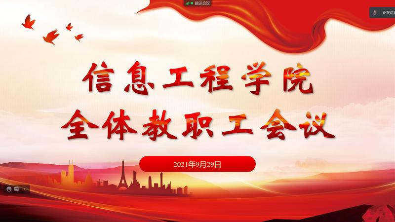 为加强全院思想政治学习,总结并部署学院整体工作。9月29日,信息工程学院线上召开全体教职工会议,院长陈祥章、党总支书记刘海涛分别就学院近期工作以及教师思想政治学习做出了重要部署与要求。