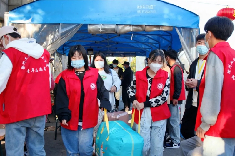 硬核接站更“暖心”。学校共设置火车站、汽车总站、高铁站、汽车东站、汽车南站、淮西客运站等六个校外迎新接站点。志愿者们6点半就从学校出发,到达站点后高举醒目的牌子奔赴各出站口,只为让新生第一时间看到我们的校标。他们从新生和家长手中接过沉重的包袱,积极提供咨询解答、候车引导等服务,帮助新生迅速融入新环境。为了提高报到效率,每辆迎新车辆都安排了随车志愿者,负责宣讲徐州及我校概况,介绍新生报到流程,并解答新生疑惑,用专业耐心的服务为新生解决实际困难。