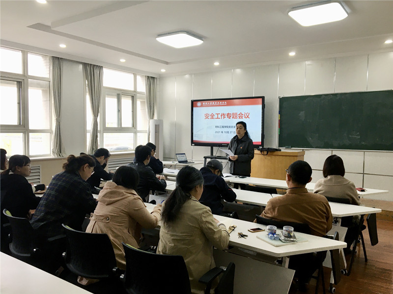 10月27日下午,材料工程学院党总支在B04-304创客空间召开安全工作专题会议,对近期疫情防控和安全工作进行统一安排,会议由总支书记李素婷主持,学院全体教职工参加会议。