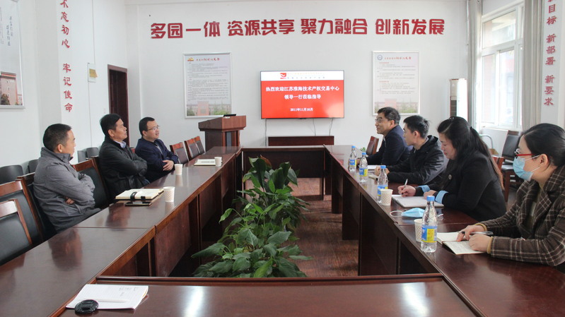 张恒中总经理对技术产权交易中心邱承智主任一行表示热烈欢迎,并介绍了园区知识产权转化和入驻企业情况。邱承智主任对江苏淮海技术产权交易中心对包括对G-top挑战赛与专利拍卖、技术合同登记、技术评估等相关业务进行介绍,并就园区功能定位希望达成长期合作。