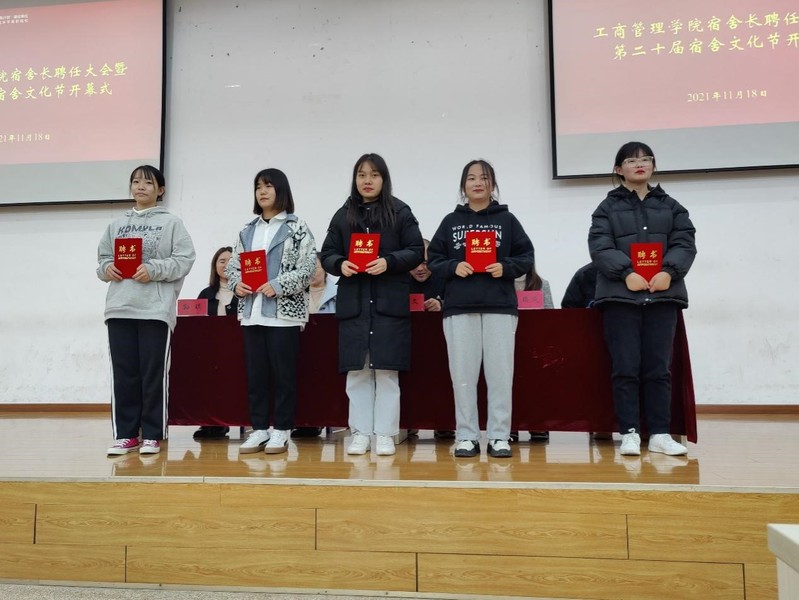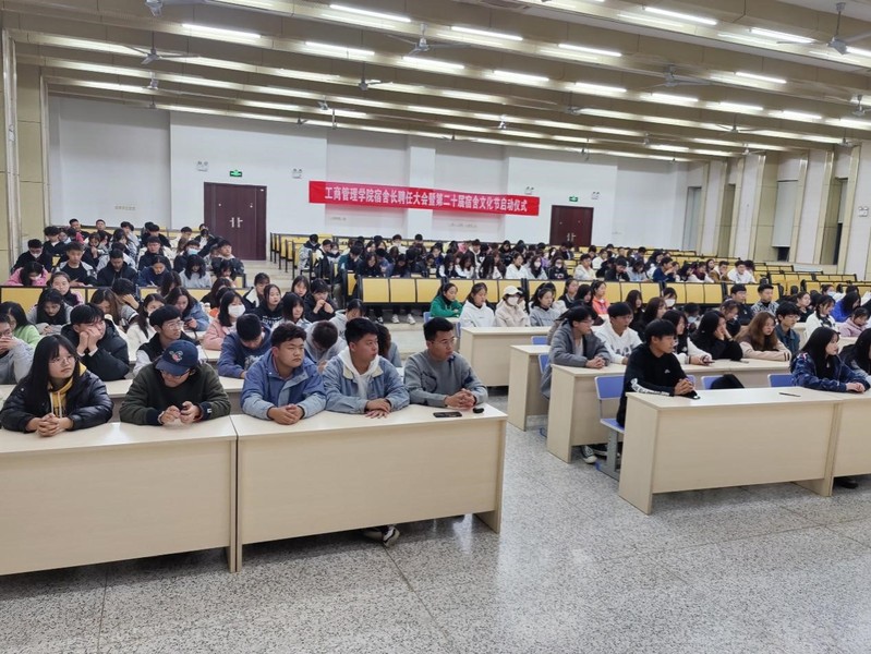 为贯彻落实高校立德树人根本任务,发挥宿舍文化的育人功能,营造“明德尚美,室雅人和”的住宿环境,11月18日,工商管理学院在B18-F202举办宿舍长聘任大会暨第二十届宿舍文化节开幕式大会。工商管理学院党总支副书记闫文、辅导员出席会议,宿舍长及2021级学生干部参加会议,辅导员邓忍主持会议。活动全程通过抖音平台“小商说”现场直播,观看直播人数超300人。