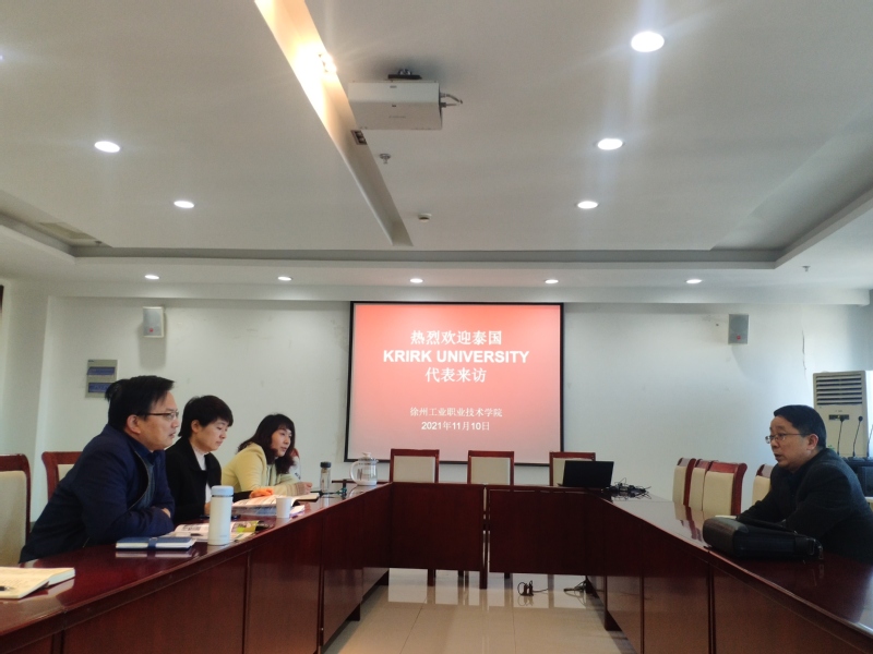 王建华院长向客人介绍了我校国际交流的基本情况以及目前学校国际化办学的最新举措与成果。张老师介绍了泰国格乐大学的办学历史和办学情况,包括专业设置和人才培养特色等,以及该校与中国院校在教育方面合作交流方面的情况。李主任重点介绍了该校专升本人才培养方案、专业设置、学分互认、交流互访、疫情常态化状态下的学习模式等内容。