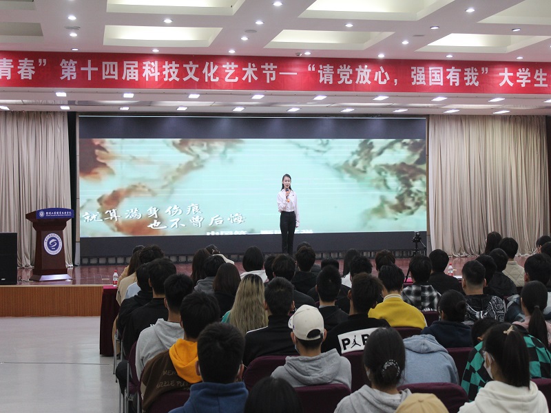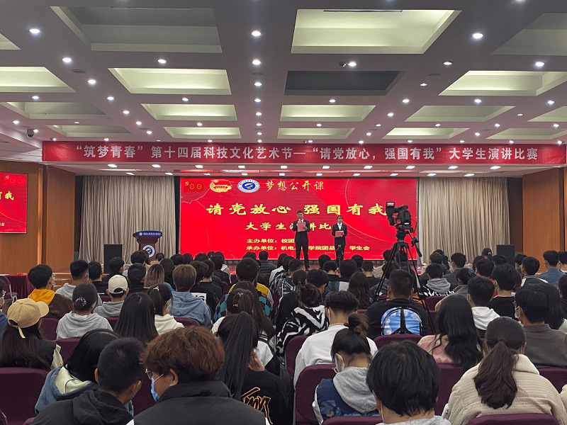 为深入学习贯彻习近平总书记在庆祝中国共产党成立100周年大会上的重要讲话精神,引导激励我校青年学生从党的百年历史中激发信仰、获得启迪、汲取力量,我校于11月19日在图书馆报告厅举行“请党放心 强国有我”大学生演讲比赛暨梦想公开课。本次比赛由校团委主办,机电工程学院团总支承办。马克思主义学院、党委学工部、校团委等部门负责人出席活动并担任评委,各二级学院团总支书记及学生代表参加了活动。活动设置了8个分会场,采用腾讯会议的方式进行现场直播。校院两级青马培训班学员、青年学习社成员共计800余人,通过线上方式观看了比赛。
