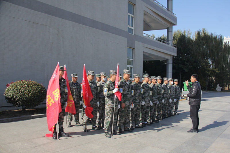 武装部副部长、学工处副处长巩庆伟在活动开始前做动员讲话,他要求全体应急排队员充分发挥在部队养成的优良传统,发扬“见困难就上、遇红旗就扛”的军人本色,积极参与公益劳动,为全校同学做好表率,当好排头兵,营造良好的氛围,为创建省文明校园贡献力量。随后,他向民兵应急排队员宣布工作分组和任务分工。