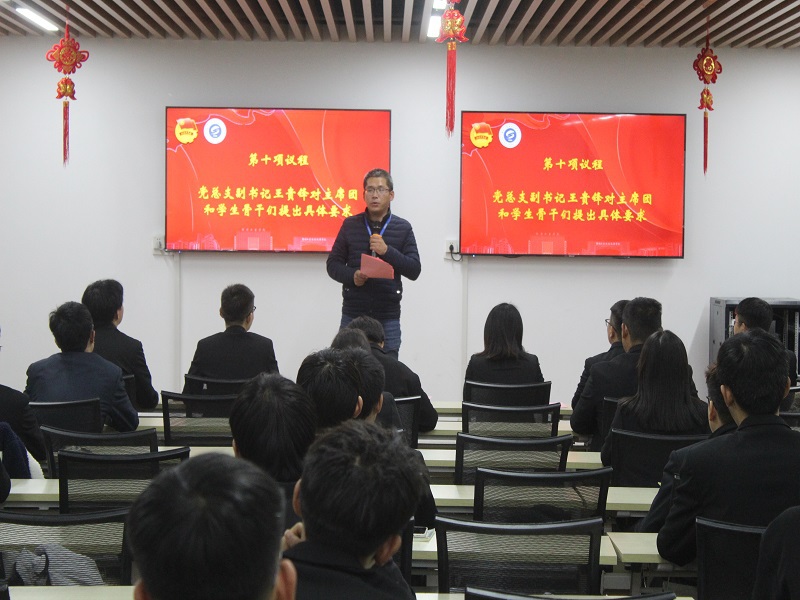 会议最后,王贵锋副书记代表学院党政对第十一届学生会学生干部的工作表示充分肯定,对第十二届学生会的成立表示祝贺,同时向新一届的学生会、主席团提出三点要求,一是要牢记初心和使命,继承和发扬优良传统,在工作、学习和生活的各个方面起到模范带头作用,围绕青年成长成才,全心全意为广大同学服务;二是要强化责任和担当,把加强自身建设作为学生会的工作的根本保障,充分发挥先进性,围绕学院改革发展,积极参与学院各项工作,促使学院形成团结向上的集体氛围;三是要提升工作本领,在工作过程中具备“精心、细心、耐心”三心,主动积极作为,为学校事业快速发展汇聚青春力量!
