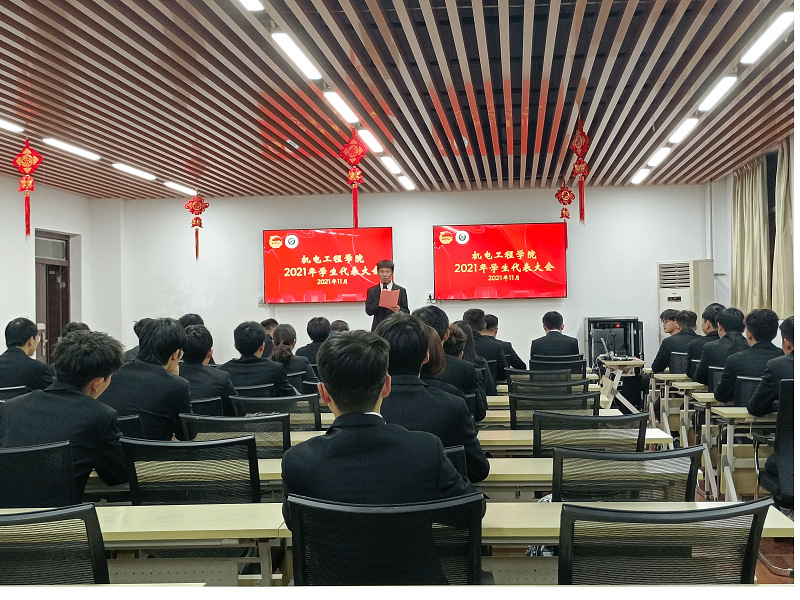 11月23日晚,机电工程学院学生代表大会在B16-302召开。学院党总支副书记王贵锋、团总支书记黄媛媛、校学生会执行主席陈辽宁及学生代表等参加会议。