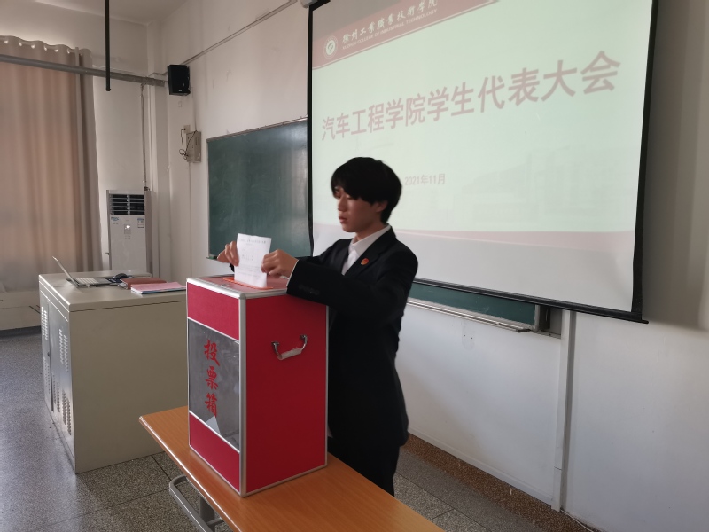 随后全体代表认真审议并通过学生会工作报告,提名并通过了选举的监票人、计票人,通过不记名投票,差额选举的方法选出了汽车工程学院第二届学生会主席团成员,执行主席刘目顺做表态发言。