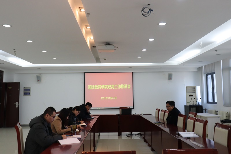 为加快推进部门“双高”建设工作,11月24日上午,国际教育学院在B18-1219会议室召开了“双高”建设工作推进会,承担各项双高建设任务的老师们参加了会议,院长王建华主持会议。