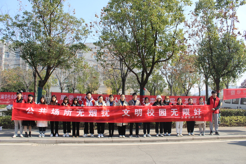 为贯彻落实高校立德树人根本任务,推进党史学习教育走深走实,增强“两抓一促”教育活动实效。11月25日,工商管理学院在梅花餐厅前广场举办了“携手控烟,共创文明”校园活动,工商管理学院闫文副书记指导工作,辅导员现场组织。