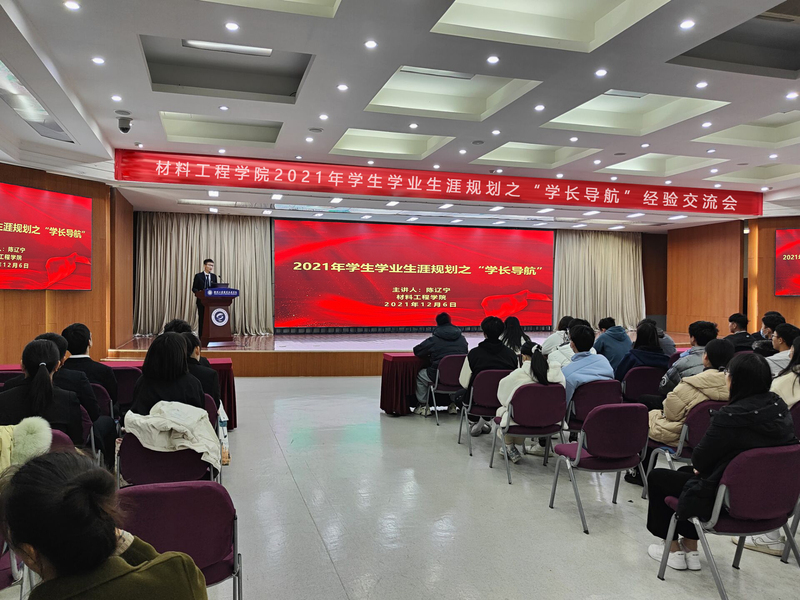 为了能更好的帮助学生成长成才,营造积极向上的学习氛围,材料工程学院于12月6日在图书馆报告厅召开了2021年学生学业生涯规划之学长导航交流会,本次讲座邀请了高分子材料工程技术(3+2)191班优秀学长代表陈辽宁同学进行经验分享与交流,会议由学院辅导员武香萍老师主持,2020级、2021级学生代表参加了会议。