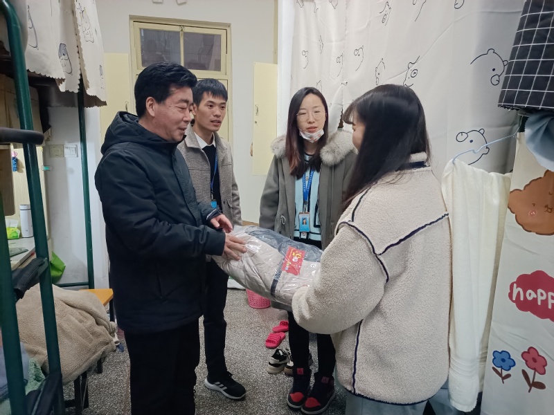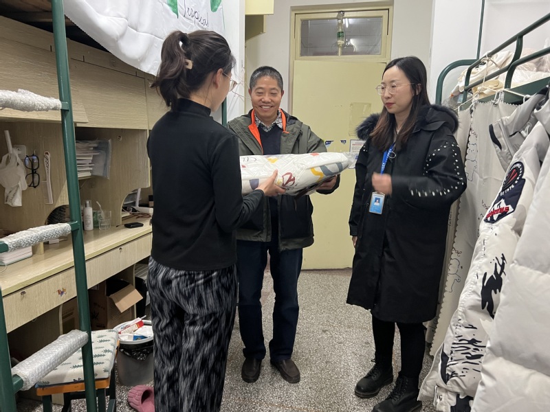 本次冬季送温暖活动发放衣物,采取学生网上自选方式,学生将购物链接发给辅导员统一购买,体现出学院对学生们送出的“温暖”是关心,爱心,更是贴心。衣物到货之后,校关工委办公室主任刘新良、学院领导在辅导员的陪同下及时走访慰问家庭经济困难学生。领导们分别来到学生宿舍,与学生亲切交谈,关心了解学生学习和生活情况,并代表学校向学生送上暖心衣物,叮嘱学生寒冷季节注意保暖,勉励同学们珍惜党和国家对大学生的资助和关怀,增强信心,奋发成才。这一份份暖心衣物不仅是物质上的支持和帮助,也是一份沉甸甸的爱,更是对受助学生们精神上的慰藉和鼓励。