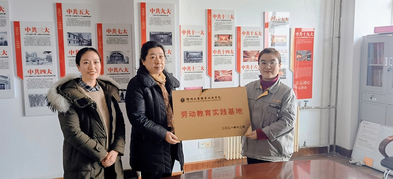 为深入贯彻落实教育部《大中小学劳动教育指导纲要(试行)》文件精神,积极探索适合高职院校人才培养模式的劳动教育实践,12月23日,材料工程学院党总支书记李素婷老师、副院长柳峰老师、党总支副书记周树会老师一行人来到徐轮橡胶有限公司,开展学生校外劳动教育实践基地挂牌及洽谈专业劳动教育实践相关事宜。