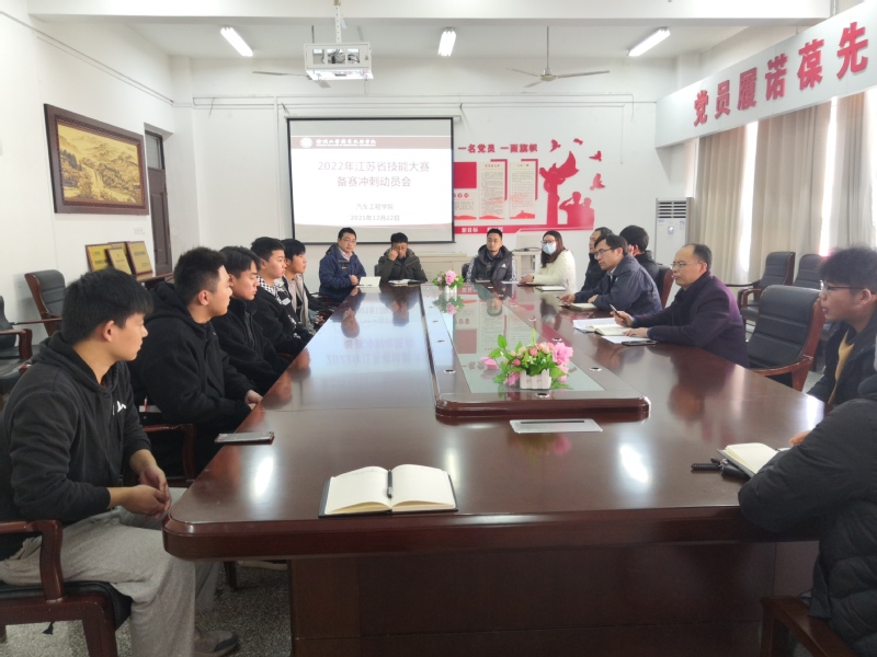 12月22日,汽车工程学院在B06-303会议室组织召开“2022年江苏省技能大赛备赛冲刺动员会”。汽车工程学院院长肖亚杰、副院长娄天祥、现代电气控制系统安装与调试等3个学生团体赛项、汽车技术等2个学生个人赛项和1个教师组赛项的指导老师、参赛教师和学生等参加会议,会议由汽车工程学院副院长娄天祥主持。
