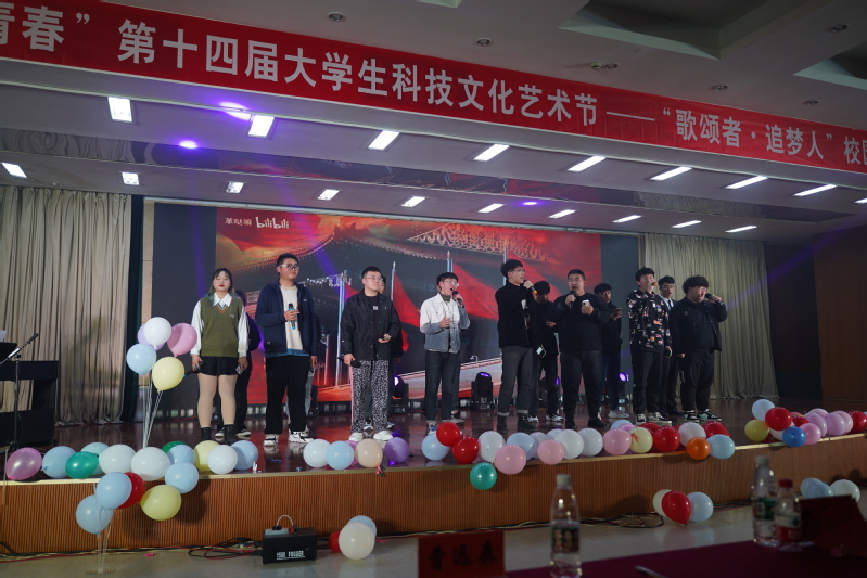 12月16日由校团委主办,工商管理学院学生会、校大学生合唱团承办的“筑梦青春”第十四届大学生科技文化艺术节——“歌颂者•追梦人”校园十佳歌手总决赛在图书馆报告厅上演。校团委书记安莹老师、党政办魏晚会老师及部分二级学院团总支书记、辅导员作为本次大赛的评委、嘉宾。现场有200名来自各二级学院学生观众,比赛还设置分会场,采取线上方式同步直播,共1.39万人次在线看,累计收获点赞4000多。