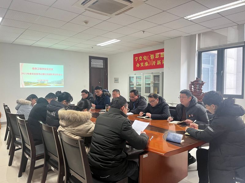 信息工程学院党总支按照学校党委组织部《关于开展2021年度基层党组织书记抓基层党建述职评议考核工作的通知》精神,认真对照《徐州工业职业技术学院基层党支部工作标准》和《徐州工业职业技术学院基层党组织及其成员党建工作责任清单》等文件要求,于12月28日下午,在B18-1019会议室组织召开了信息工程学院党支部书记抓基层党建工作责任述职评议会。会议由党总支书记刘海涛主持,信息工程学院党总支班子成员、各党支部委员和部分教师代表参会。