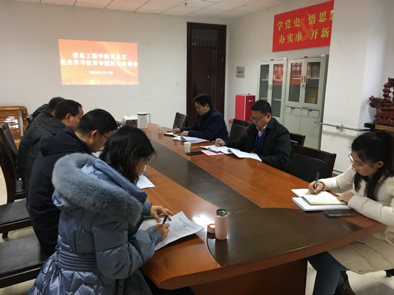 根据学校《关于召开党史学习教育专题民主生活会》的有关要求,1月12日下午,信息工程学院党总支在B18-1019会议室召开2021年度党史学习教育专题民主生活会。党委委员、副院长朱作付,组织部部长朱伟军到会督导指导,信息工程学院党总支全体委员参会。民主生活会由党总支书记刘海涛主持。