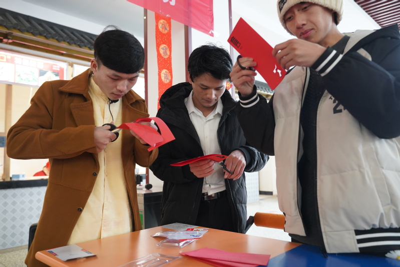 “镂纸传民俗,剪彩起汉风”。剪纸文化体验隆重开场。早已经熟稔这项民俗的留学生在喜庆的红色构图上认真的裁剪起来,细若游丝的“喜鹊报春”,玲珑剔透的“五福临门”,一一在留学生的手中呈现,他们的一双巧手剪裁出新春美满的祝福,刻镂出“一带一路”的友谊桥梁。