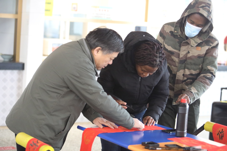 为进一步丰富留学生寒假生活,深入传播中华传统文化,1月24日,国际教育学院“欢聚一堂包饺子其乐融融贺新年”留学生春节传统文化庆祝活动在学校一食堂民族餐厅隆重举行。徐州鼓楼分局出入境支队长肖红和沈鹭、杨书英警官走访此项活动。活动由民俗剪纸、新春楹联、包煮饺子三项组成。
